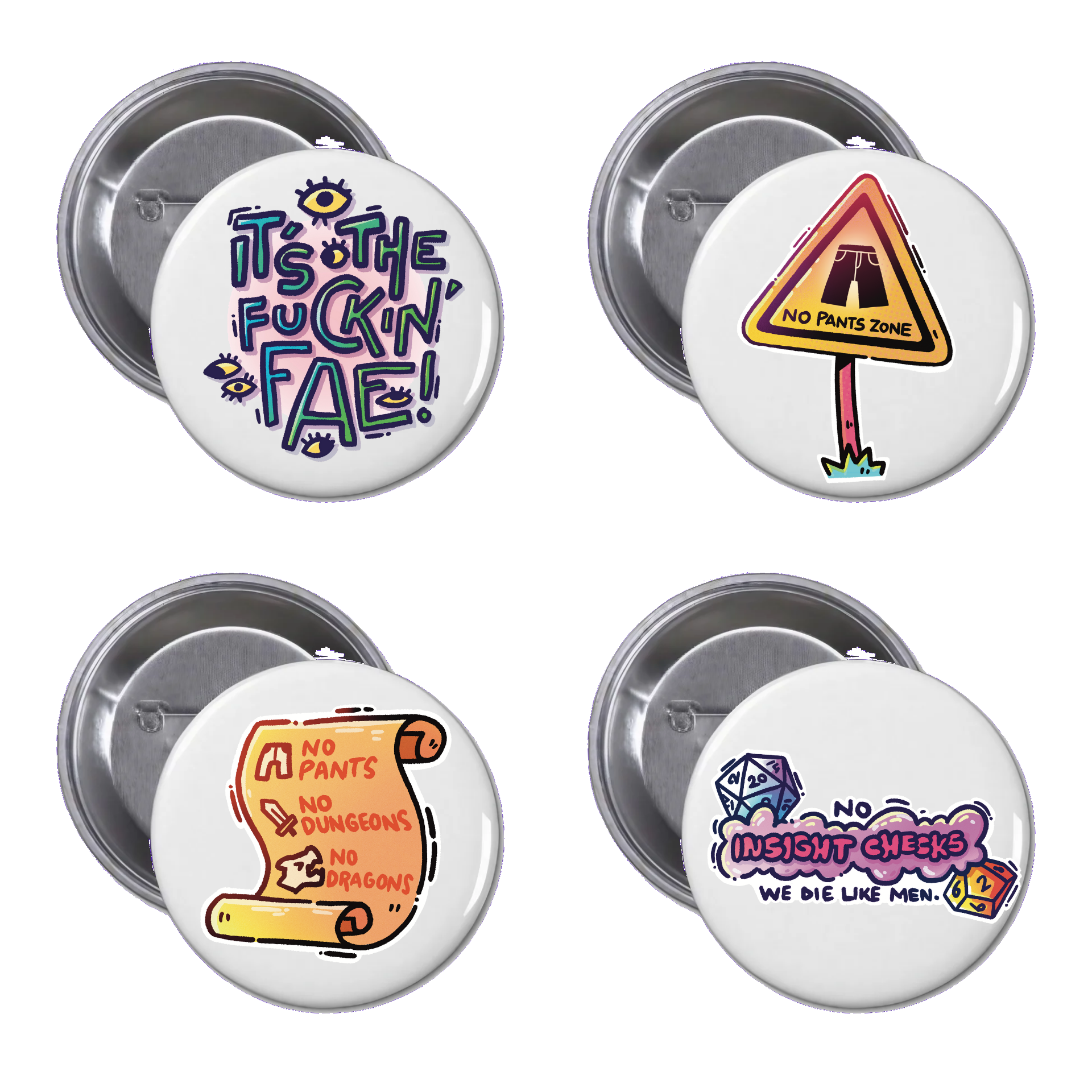 No Pants, No Insight Checks, all because of the f*cking fae! An assortment of 4 badges.